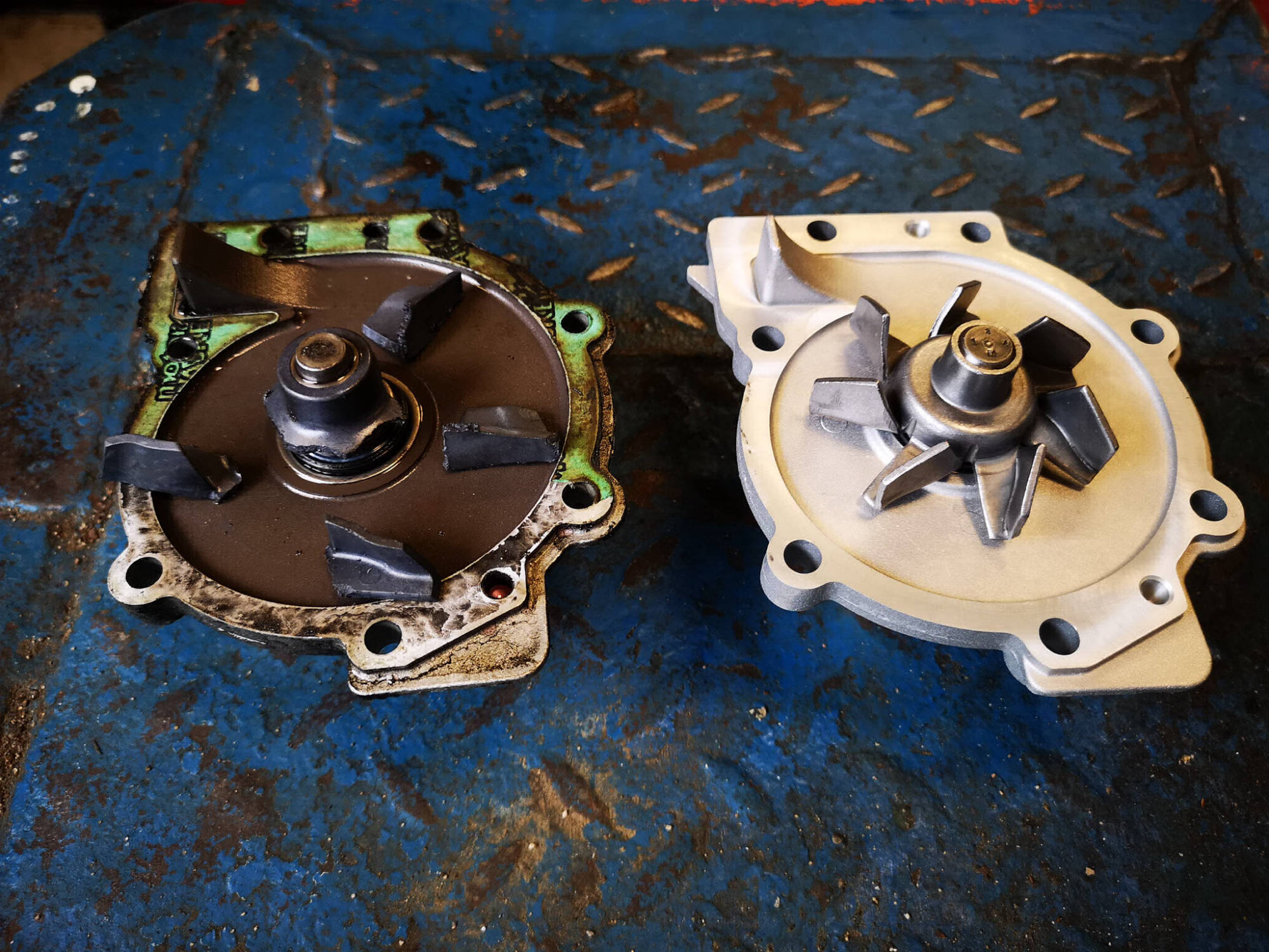 Purunenud veepump võrreldes uuega