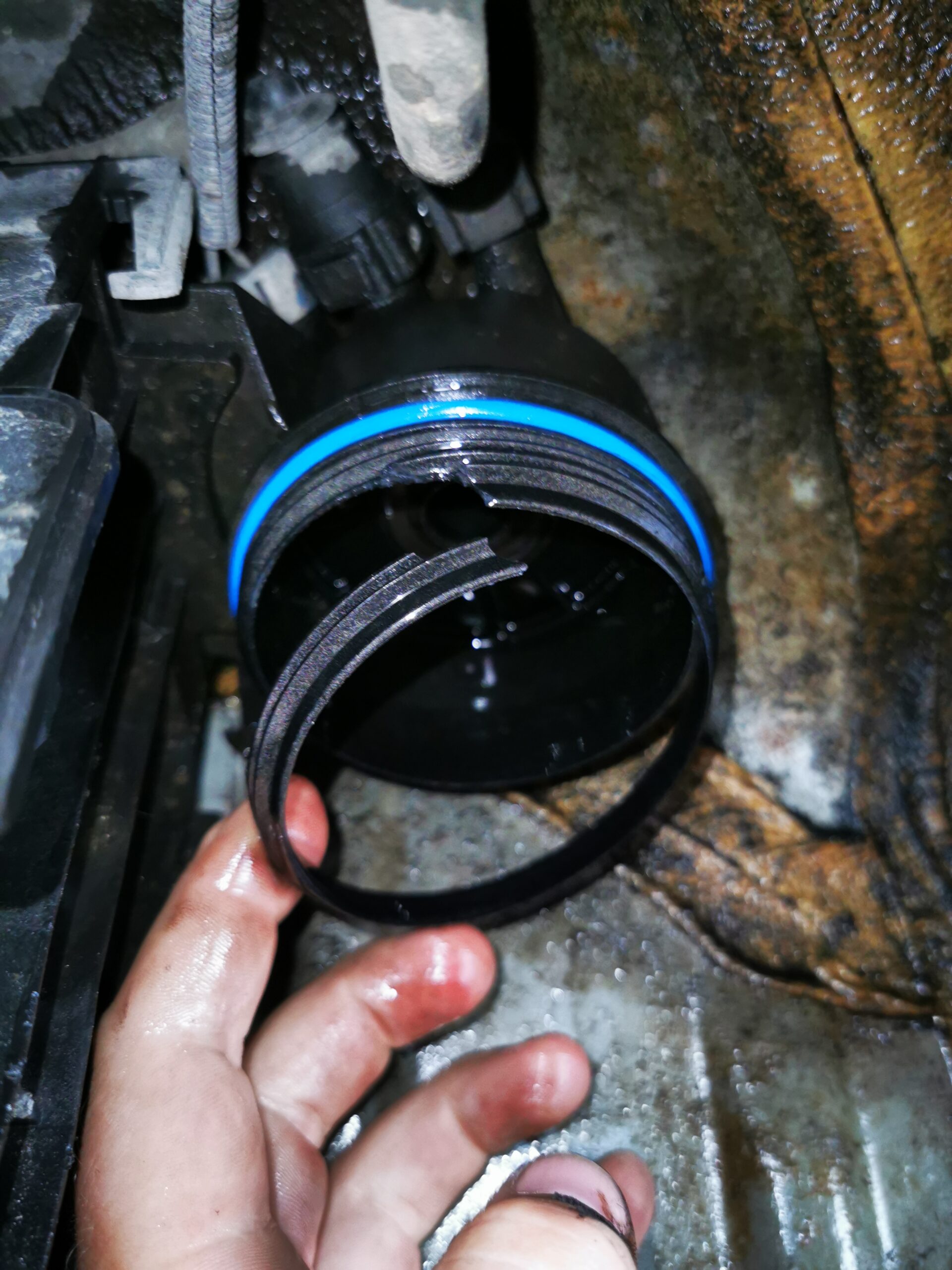 Vale paigaldusvõttega rikutud kütusefiltri korpus