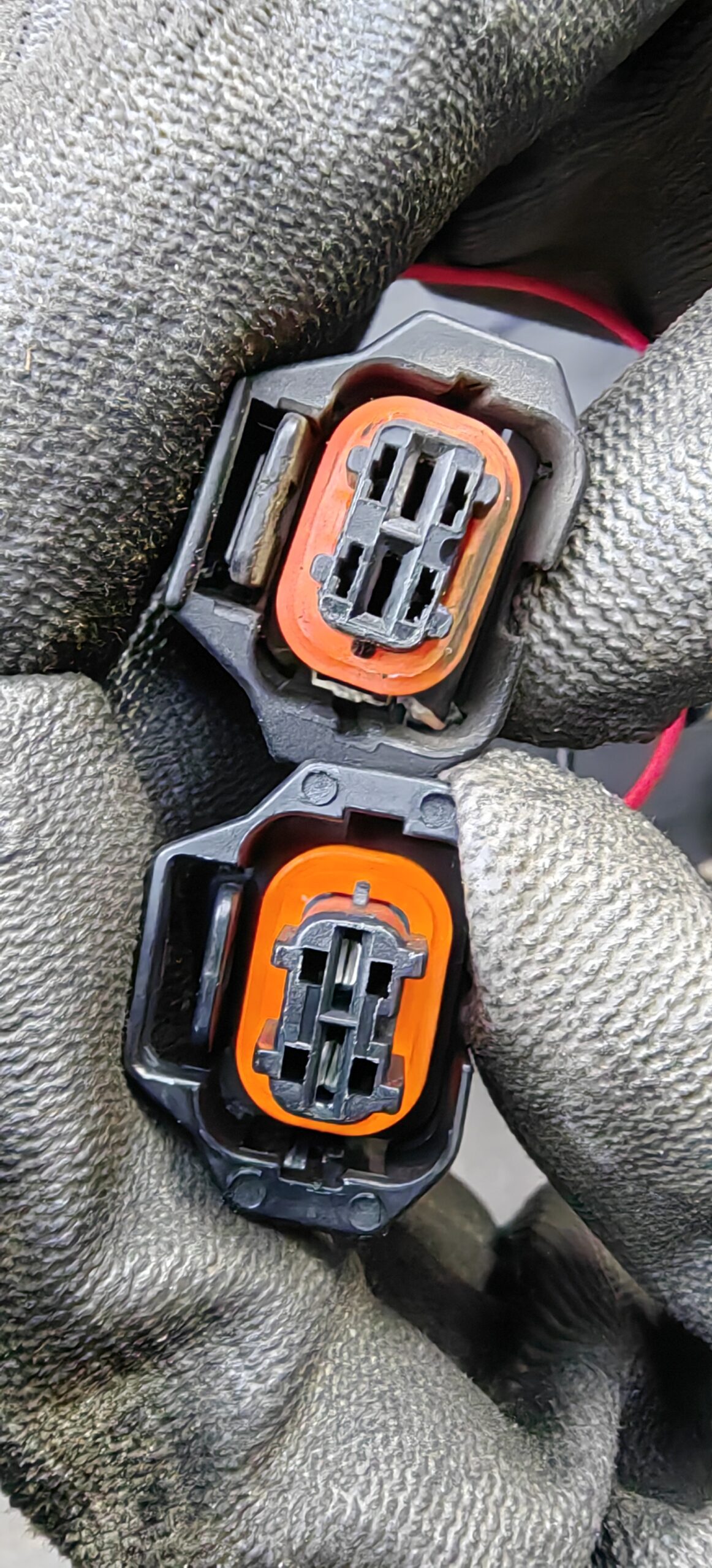 Kahjustunud pihusti pistik võrdluses uuega